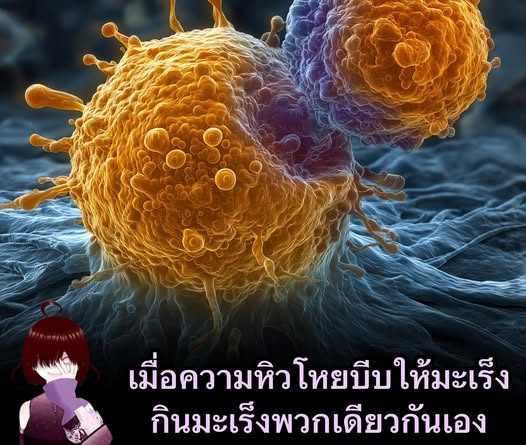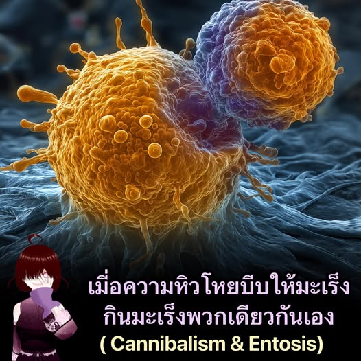 เซลล์มะเร็งที่หิวโหย สามารถจับเซลล์ข้างๆ กินทั้งเป็นได้ ซึ่งอาจเป็นเม็ดเลือดขาวที่อ่อนแรงอยู่ หรือแม้กระทั่งมะเร็งพวกเดียวกันเอง