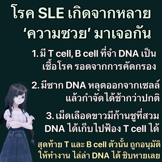 SLE ไม่ได้เป็นง่ายๆ มันต้องมีหลายปัจจัยมาเจอกันในเวลาที่เหมาะเจาะมากๆ ค่ะ